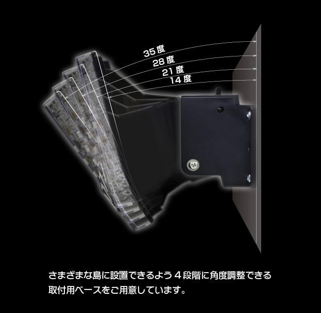 エレクス発のフルフラット薄型ボディを採用し圧迫感のないスリムなランプでありながら見やすさと輝きを両立させました。 薄型ではあるが独自のレンズカット技術で従来のレンズと比べても遜色なく美しいイルミネーションがホールを彩ります。